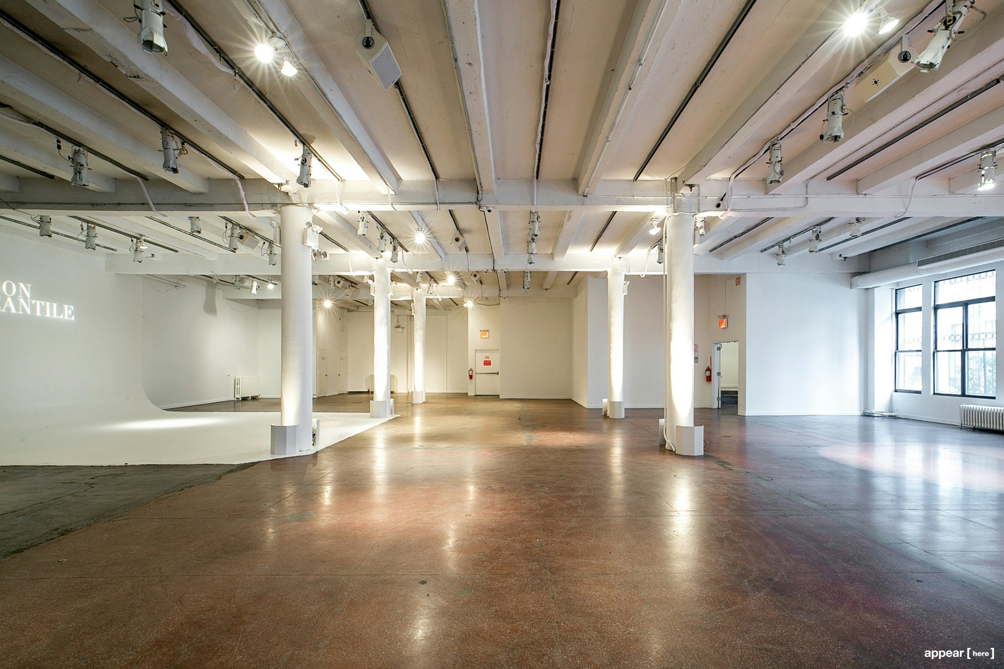Hold your next event at this large space for rent on W 36th Street. A large space with plenty of natural light and a cyclorama, this showroom is suitable for photo shoots as well.