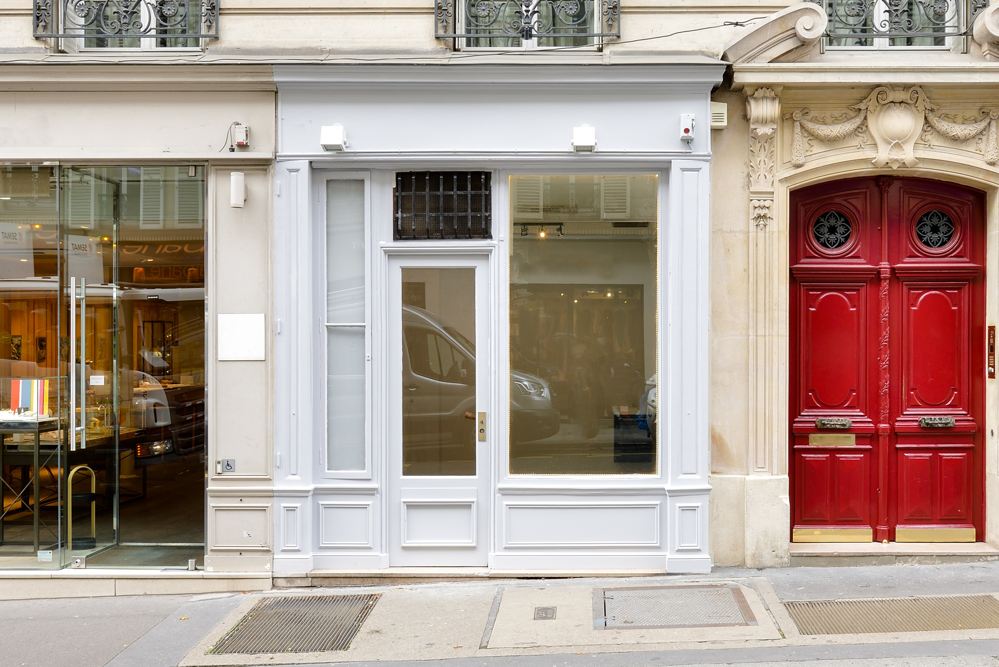 This large, uncluttered, white space is ideally located between the most selective of Parisian department stores and the "Palace of the Left Bank", a high-end ambassador of French Art de Vivre. With a ceiling height of 3m and total surface area of 100m2 (60m2 on the ground floor), the space is perfect for organising a pop up store, fashion showroom, art exhibition or a private event.