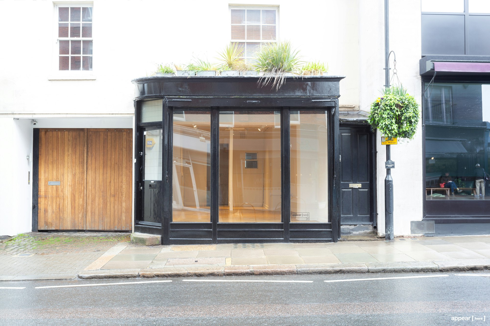 This retail space is located on the ground floor of a building on Kensington Church Street, just below Notting Hill Gate and not far from Portobello Road. The unit is a decent size with a pretty exterior entrance underneath a timber yard sign. Inside, the space features brick walls painted pale tones, wooden floors, a pillar in the middle, and a small alcove in the back. The condition of the unit is great.